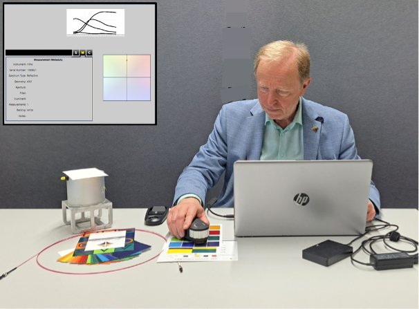 Fig. F1: Measuring stations for color characterization and quality control, and typical measurement examples